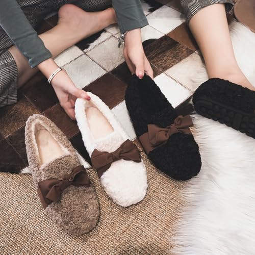 Women's Warm Faux Fur Slippers with Bow Indoor Outdoor Slip On Fuzzy Loafers for Women Winter Casual House Shoes 6