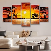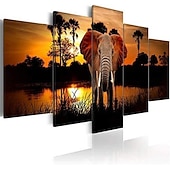 5 Panels Wall Art Canvas Prints Posters Painting Artwork Picture Elephant Animal Tree Sunset Home Decoration Décor Rolled Canvas With Stretched Frame 14