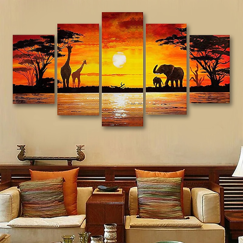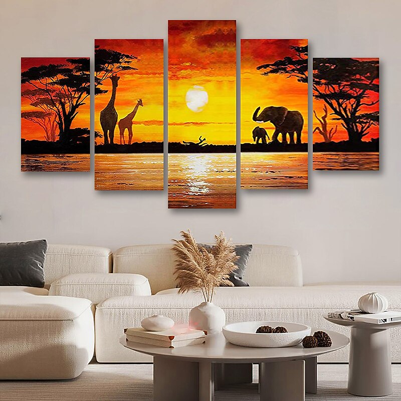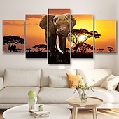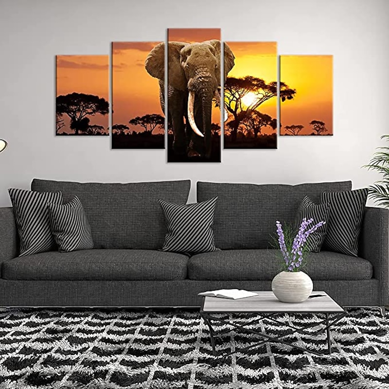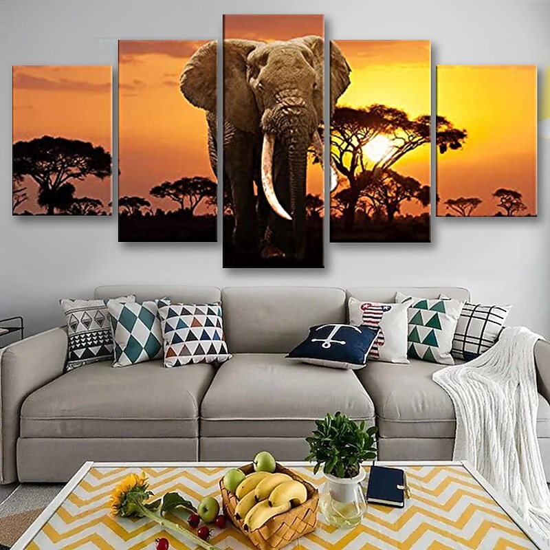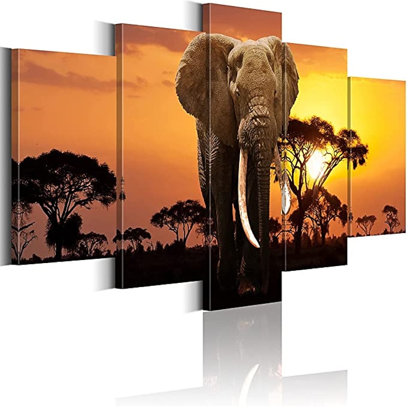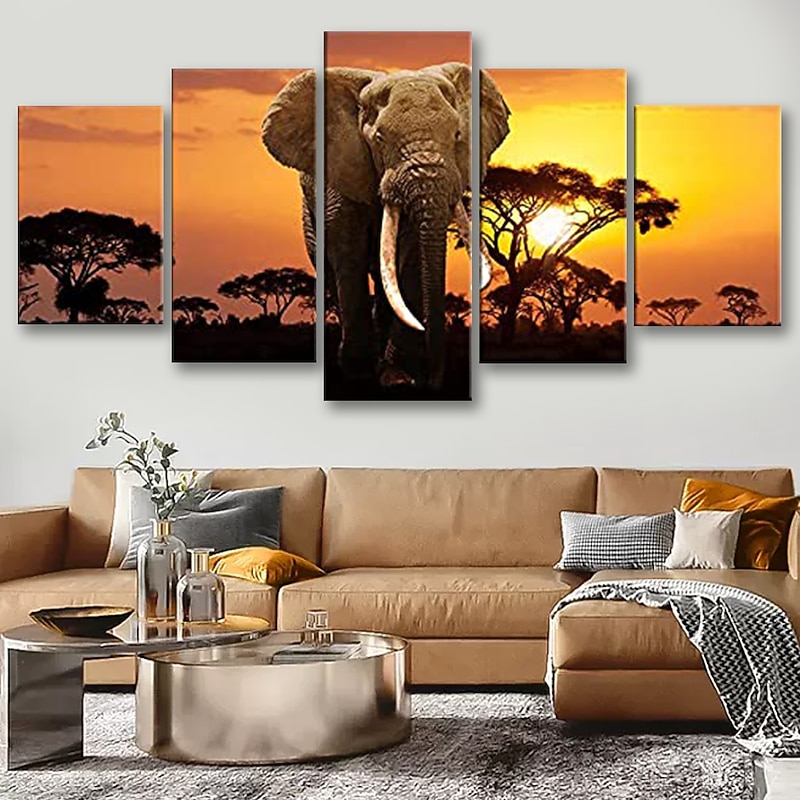 5 Panels Wall Art Canvas Prints Posters Painting Artwork Picture Elephant Animal Tree Sunset Home Decoration Décor Rolled Canvas With Stretched Frame 11