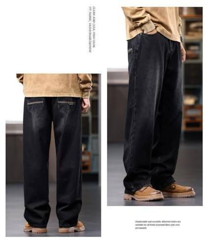 Jeans Pants Trouser Denim Fat Plus Size Trendy Retro Loose Wide Foot Casual Business Commuter Straight Leg for Men 6