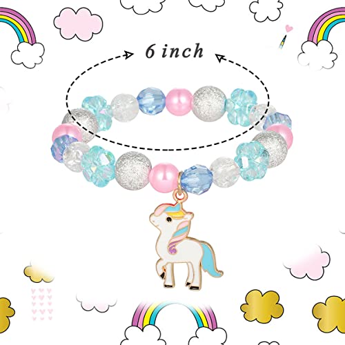 HOT ! Spiritlele 12 Pieces Unicorn Bracelets Rainbow Star Heart Charm Beaded Strand Stretch Bracelet Wristband Set Princess Party Favors