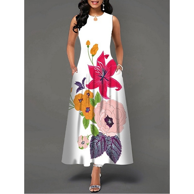 Women's Maxi Dress Casual Dress A Line Dress Tank Dress Stylish Casual Vacation Daily Regular Fit Floral Sleeveless Crew Neck Black White Yellow Blue Summer 12