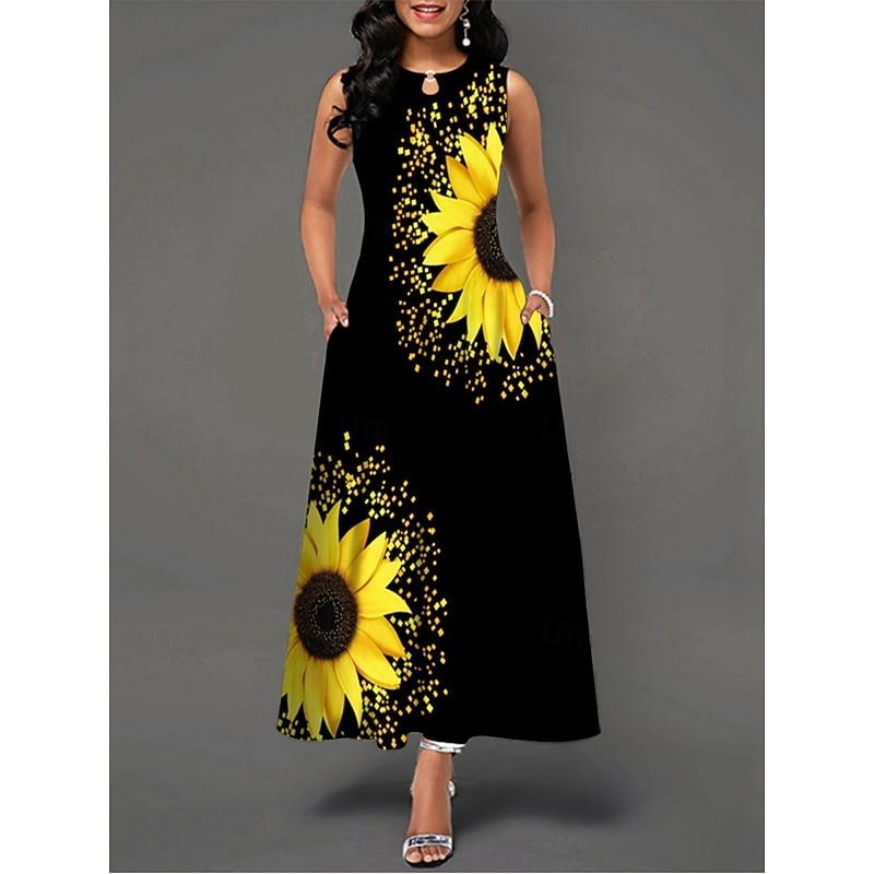 More information about Women's Maxi Dress Casual Dress A Line Dress Tank Dress Stylish Casual Vacation Daily Regular Fit Floral Sleeveless Crew Neck Black White Yellow Blue Summer