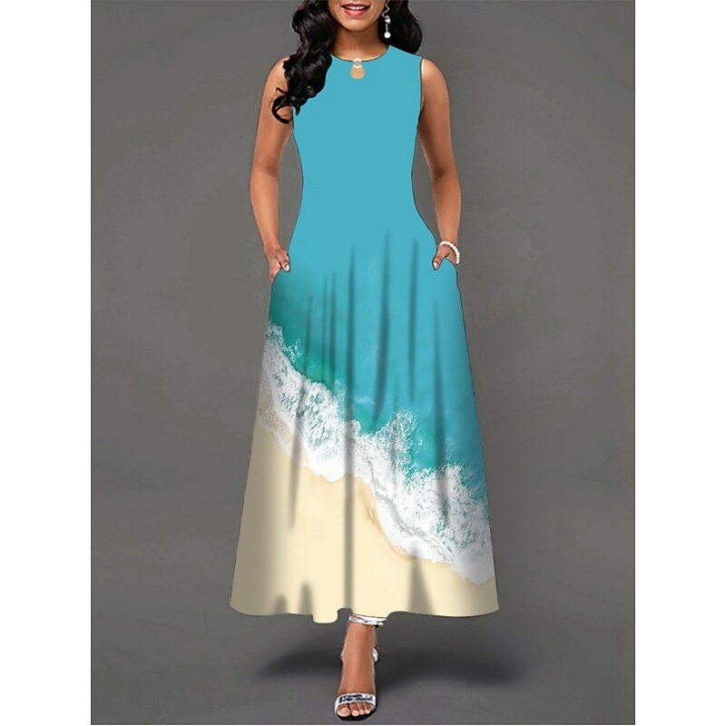 Women's Maxi Dress Casual Dress A Line Dress Tank Dress Stylish Casual Vacation Daily Regular Fit Floral Sleeveless Crew Neck Black White Yellow Blue Summer 9