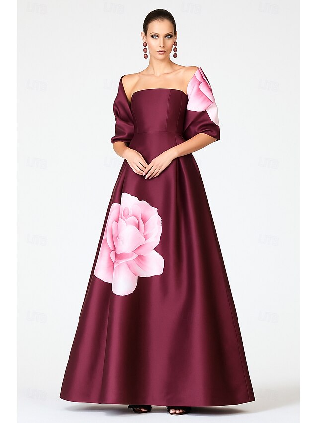 $139.99 - Red Black A-Line Evening Gown Elegant Dress Formal Wedding Floor Length Short Sleeve Strapless Pocket Satin with Floral Print Shawl 2025 2025. Shop for cheap A-Line Evening Dresses online? Buy at lightinthebox.com on sale today!