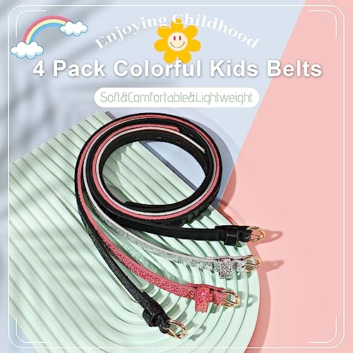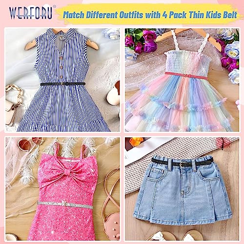 WERFORU 4 Pack 3 Pack Kids PU Leather Skinny Glitter Waist Belt for Girls Boys Child Thin Shiny Waist Belt for Jeans Dress 4