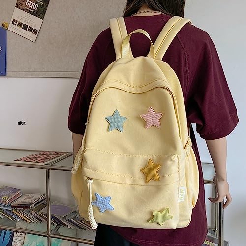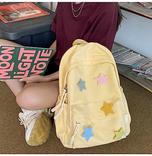 HOT ! JHTPSLR Preppy Backpack Y2K Aesthetic Backpack Colorful Stars Cute Aesthetic Casual Daypack Laptop Backpack Mochilas (Yellow)