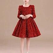 More information about Toddler Girls' Party Dress Sequin Short Sleeve Performance Mesh Cute Princess Polyester Above Knee Sheath Dress Tulle Dress Summer Spring Fall 3-7 Years Red