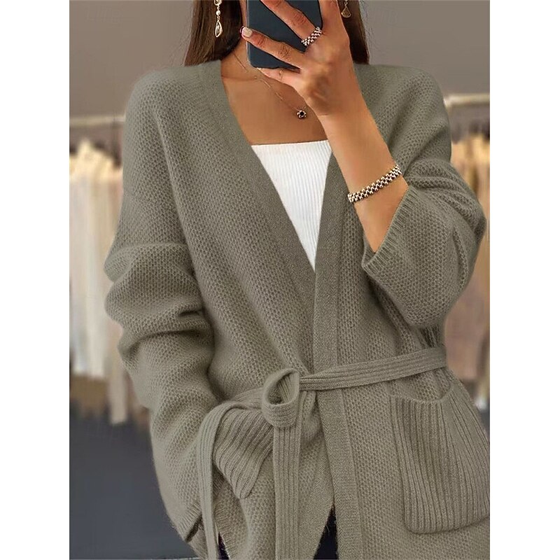 HOT ! Women's Sweater Cardigan Sweater Jacket V Neck Knit Lace up Pocket Knitted Drop Shoulder Spring Fall Home Daily Weekend Daily Casual Soft Long Sleeve Pure Color Camel Beige
