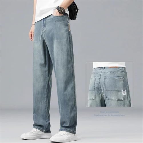 More information about Men's Summer Ultra-Thin Lyocell Drape Soft Fabric Loose Straight Denim Pants Elastic Trousers