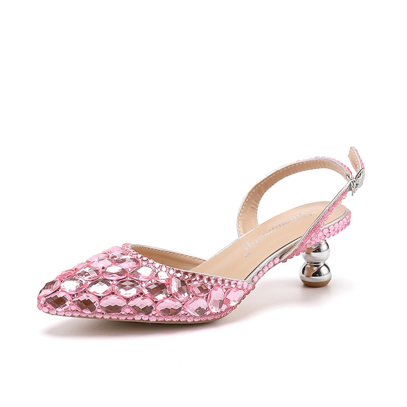 : Designed with a pointed toe and a fantasy heel for a chic appearance, these slingback heels provide a classic fit. The adjustable buckle on the strap ensures a secure and customizable fit, allowing for prolonged wear without discomfort.