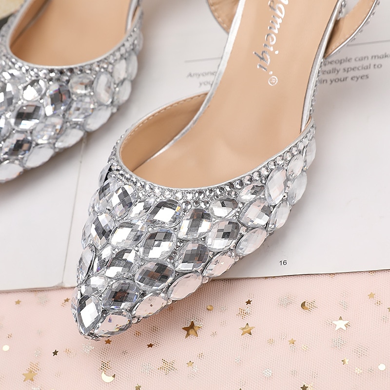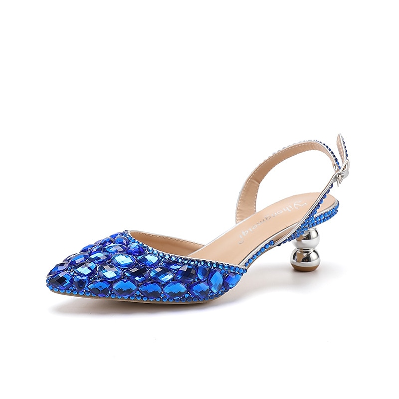 Women's Blue Rhinestone Slingback Heels - Perfect for Weddings and Evening Parties