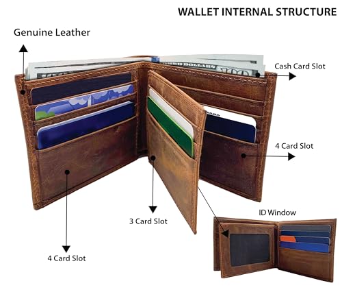 • PREMIUM QUALITY GENUINE LEATHER – BUILT TO LAST Crafted from high-quality genuine leather, this bifold wallet provides a soft yet rugged feel. The expertly stitched tan leather wallet ages beautifully over time — combining function with classic style for any man who values durability and elegance.