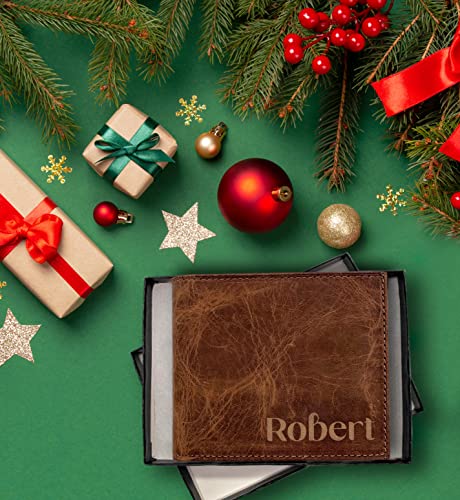 HOT ! Personalized Mens Wallet,Genuine Leather Wallet, Custom Men Wallets for Him, Husband, Dad, Boyfriend, Groom, Gift for Birthday, Anniversary, Christmas, Fathers Day (Brown)