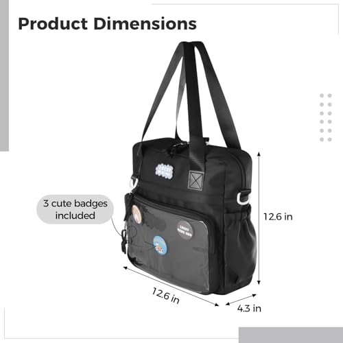BOSREROY Black Anime Ita Bag, Terylene Cotton Crossbody Messenger Bag With Insert For Pins, Travel & Display 1