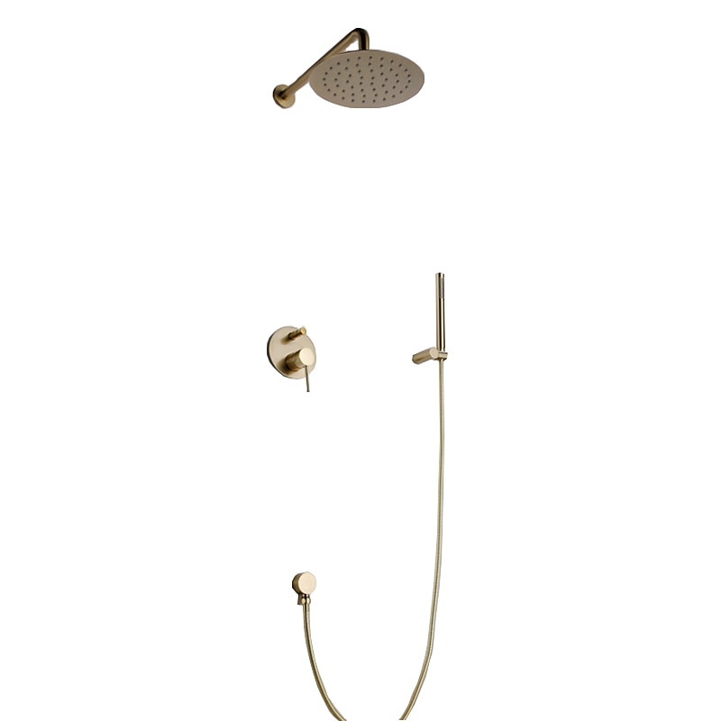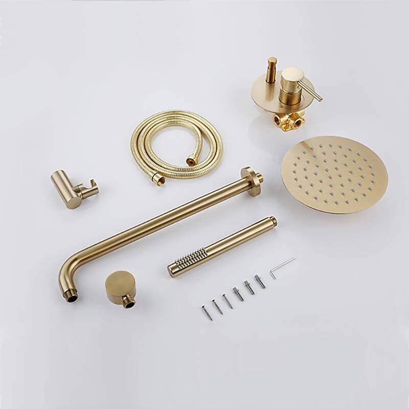 Round Golden Shower System Faucet Set Rainfall Shower Head 8 inch,  Rough In Valve and Trim Kit Combo Kit, High Pressure Heldhead Wall Mounted for Bath Bathroom 10
