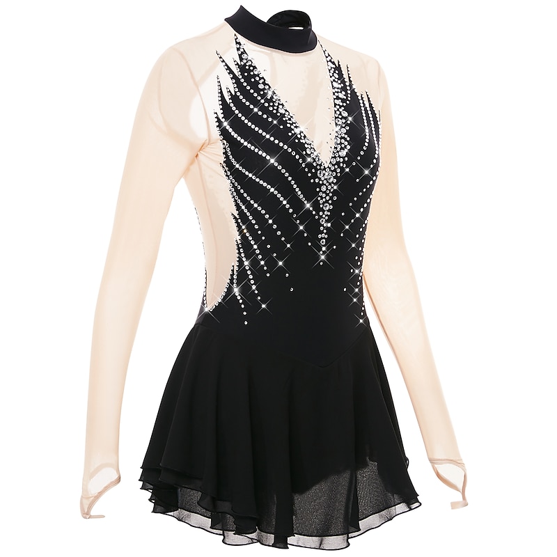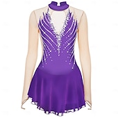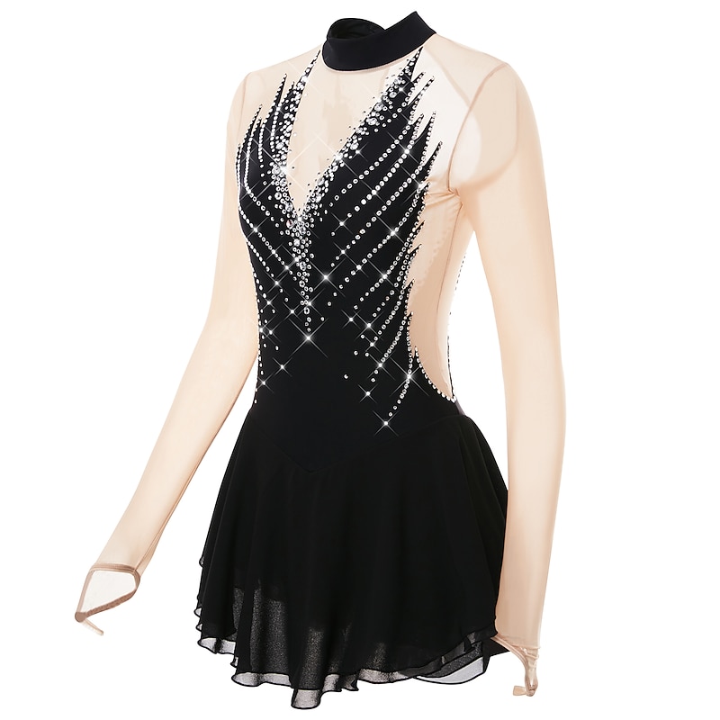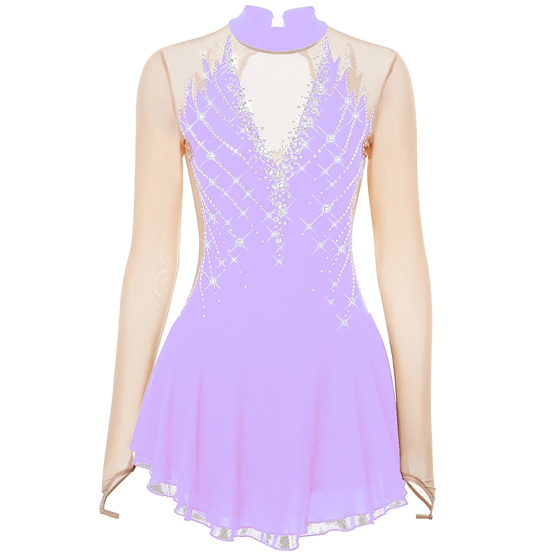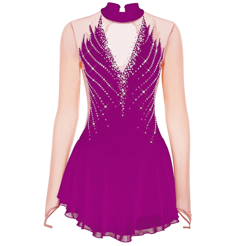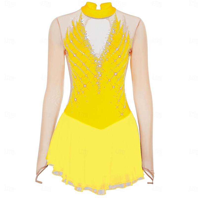 More information about Figure Skating Dress Women's Girls' Ice Skating Dress Outfits Black Yellow Dark Purple Open Back Mesh Spandex High Elasticity Professional Competition Skating Wear Crystal / Rhinestone Long Sleeve