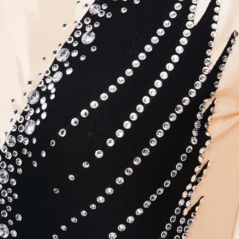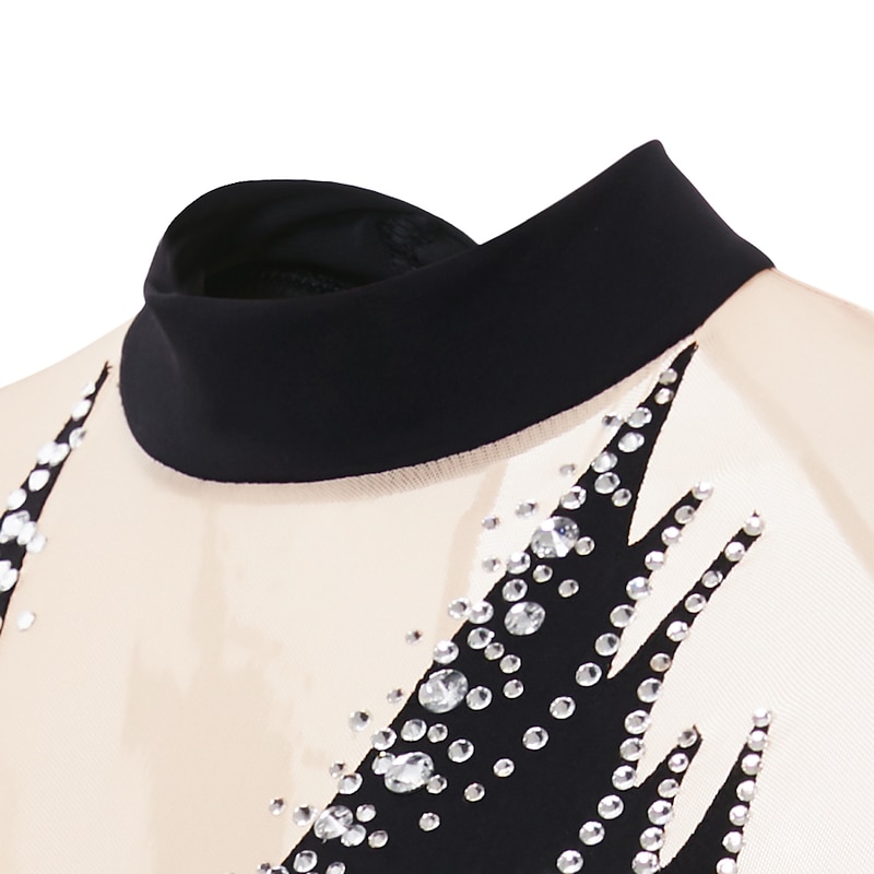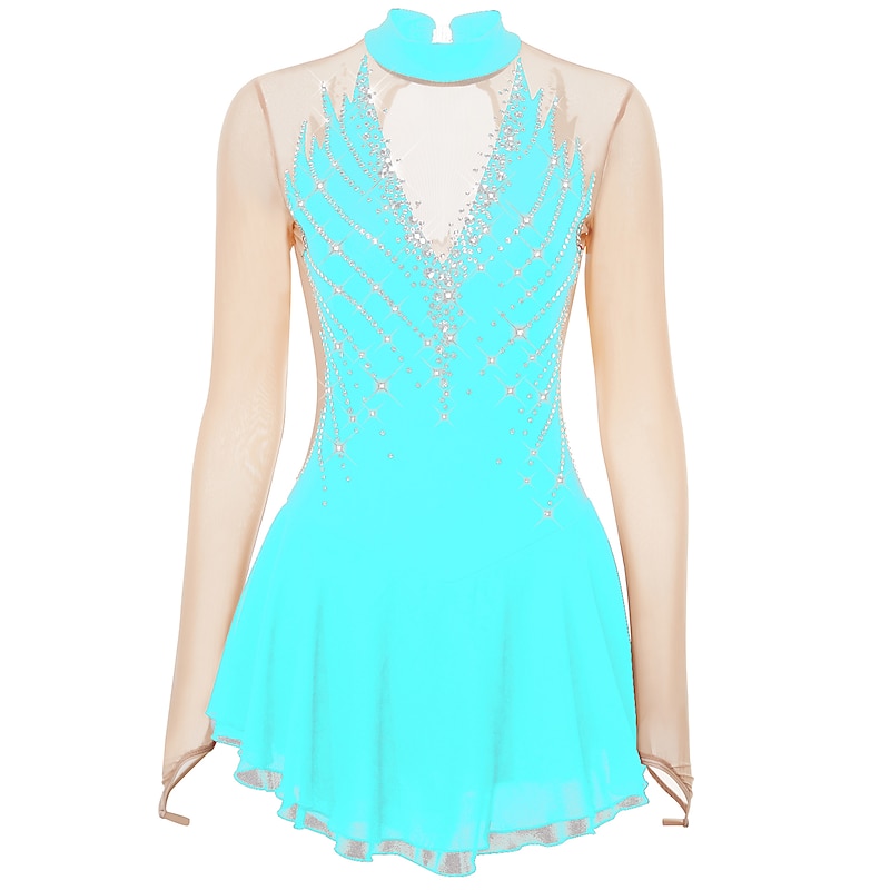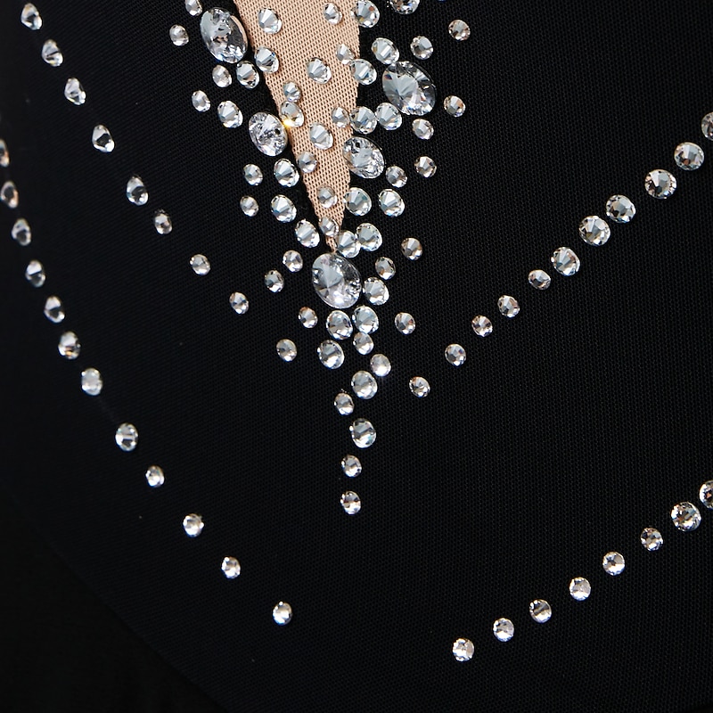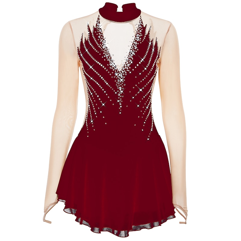 More information about Figure Skating Dress Women's Girls' Ice Skating Dress Outfits Black Yellow Dark Purple Open Back Mesh Spandex High Elasticity Professional Competition Skating Wear Crystal / Rhinestone Long Sleeve