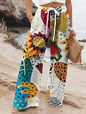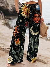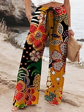 More information about Women's Wide Leg Pants Trousers Vacation Casual Long High Waist Floral Elastic Waist Printing High Cut Breathability Soft Micro-elastic Vacation Street Daily Wear Black White Yellow Spring Fall