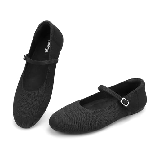 Women's Round Toe Ballet Flats Comfortable Mary Jane Shoes Dressy Slip On Knit Flats Adjustable Straps Washable Flats 6