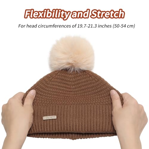 ZLYC Kids Winter Hats for Girls Boys Pom Pom Beanie Hat Cotton Lined Knitted Cap 5