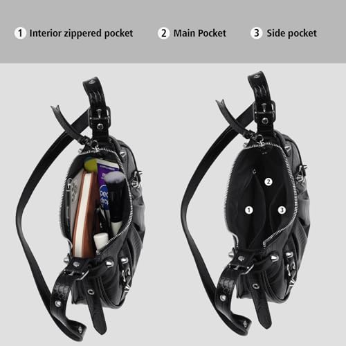 More information about Slouchy Crossbody Bag for Women, Trendy Hobo Shoulder Purse with Adjustable Shoulder Strap, Punk Studded Underarm Bag, Y2k Purse (BLACK)