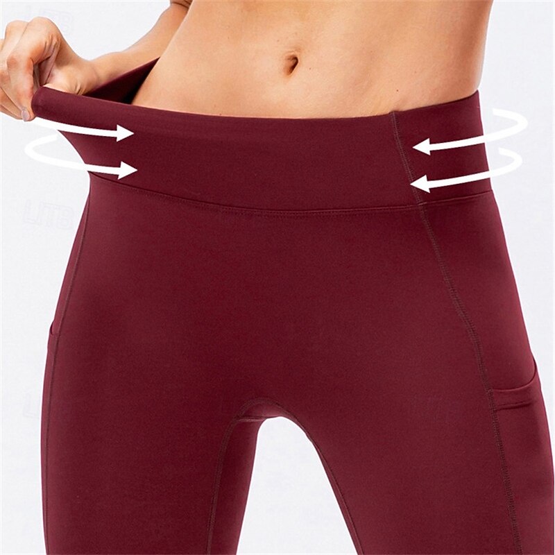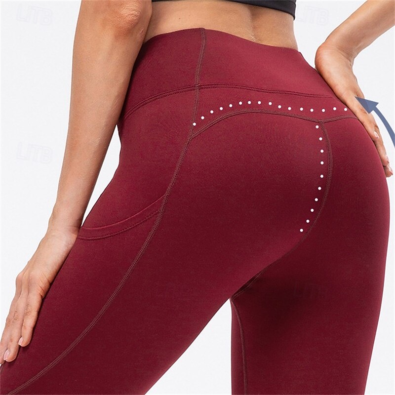 More information about Women's Yoga Pants Fleece Lined Leggings Yoga Leggings Side Pockets Butt Lift Tummy Control High Waist Pilates Gym Workout Workout Tights Solid Color Black Army Green Burgundy Fall Winter Sports