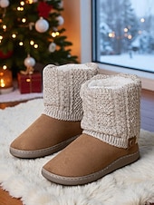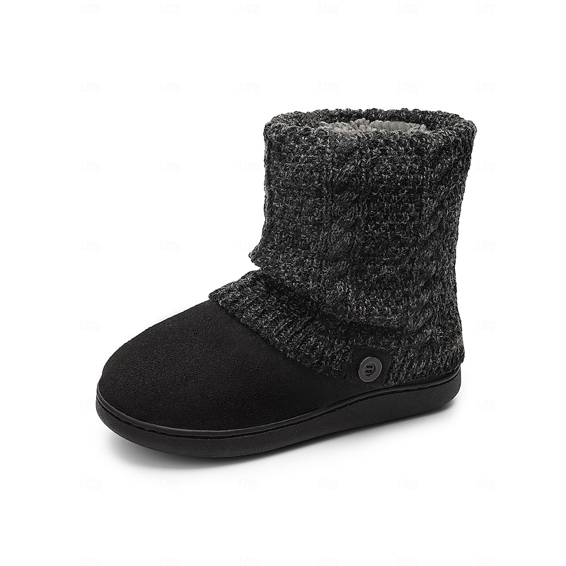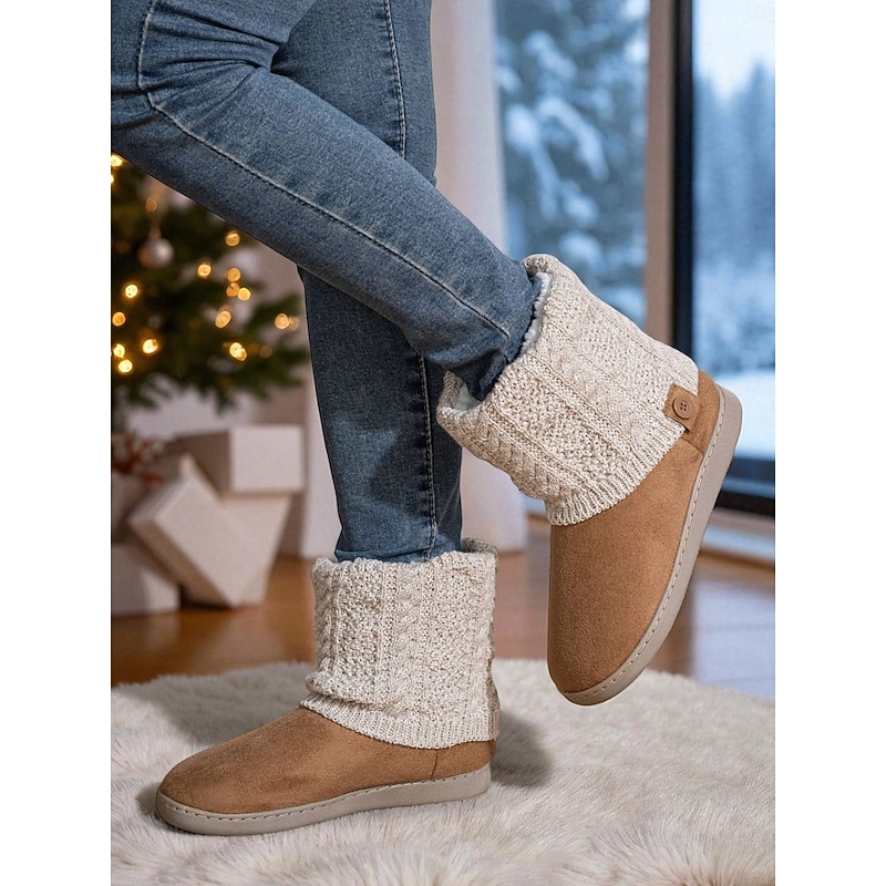 More information about Women's Brown Faux Suede Winter Ankle Boots – Knit Cuff Button Detail, Plush Lining, Cozy Indoor & Outdoor Casual Footwear