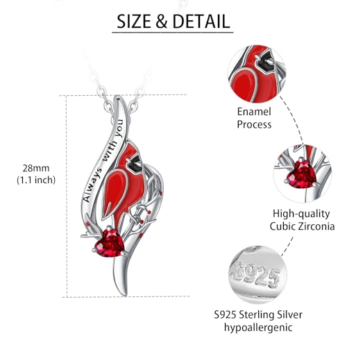 HOT ! Sterling Silver Cardinal Necklace for Women, 925 Red Bird Spiritual Memorial Engraved Always with You Dainty Inspirational Jewelry Gifts for Loss of Loved