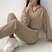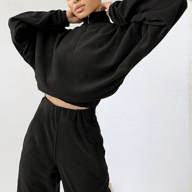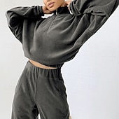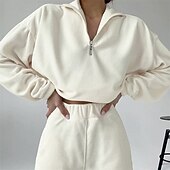 More information about Women's Fashion Streetwear Pants Sets Bolero Top Sweatshirt Long Sleeve Stand Collar Solid Color Zipper Outdoor Work Casual Black Spring Regular Fit