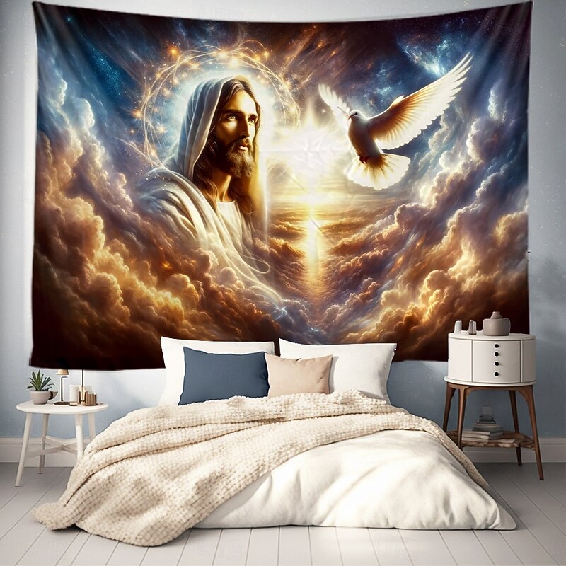 Hanging Tapestry Jesus Wall Art Large Tapestry Mural Decor Photograph Backdrop Blanket Curtain Home Bedroom Living Room Decoration 18