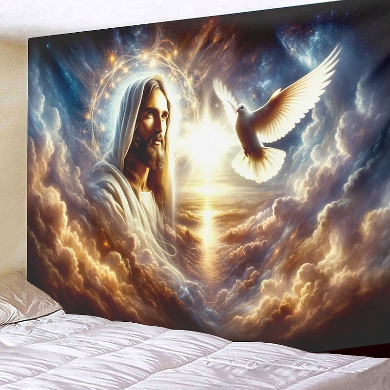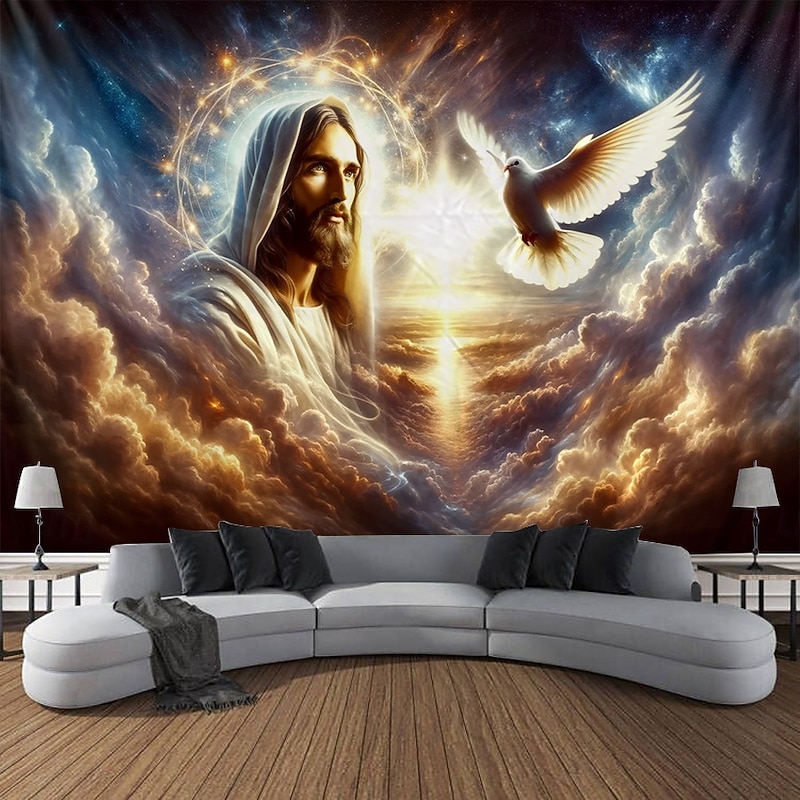 Hanging Tapestry Jesus Wall Art Large Tapestry Mural Decor Photograph Backdrop Blanket Curtain Home Bedroom Living Room Decoration 9