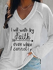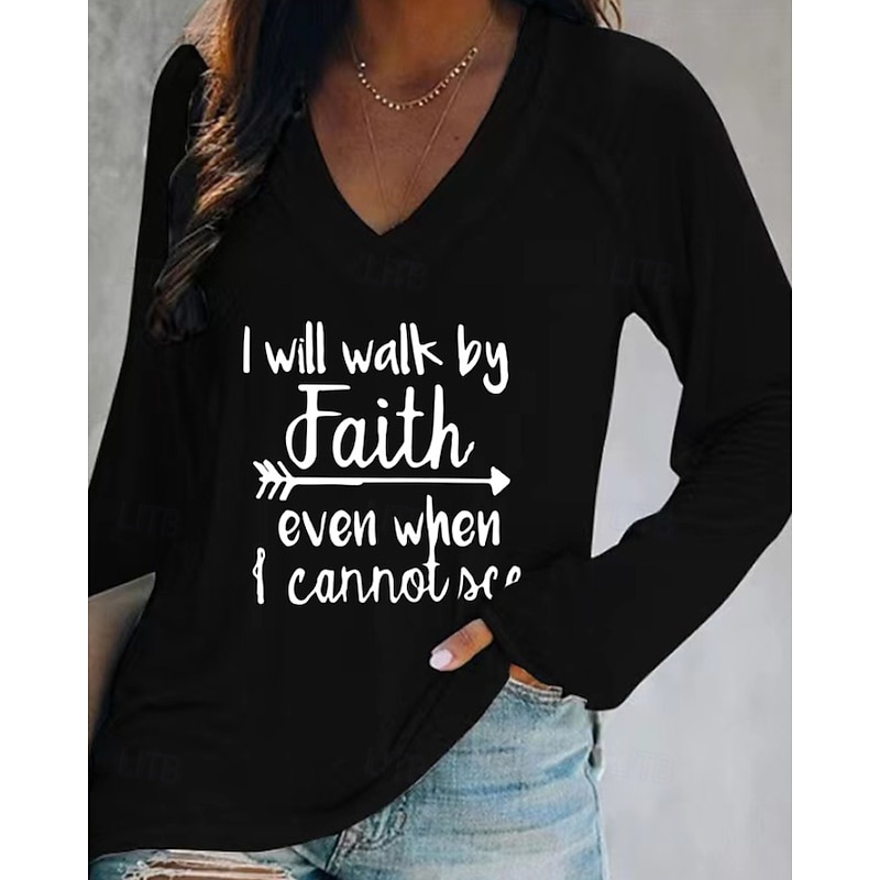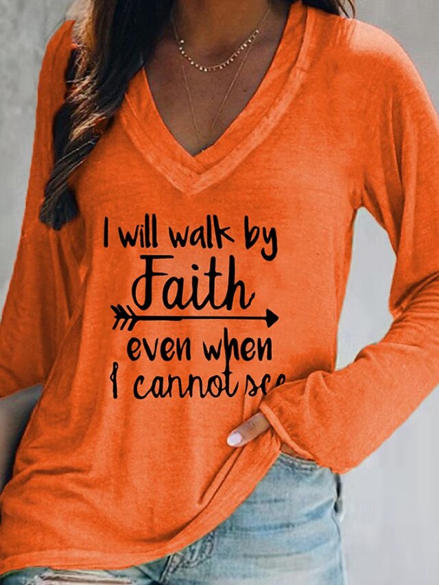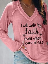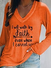 More information about Women's T Shirt Letter Casual Long Sleeve V Neck Regular Tops Daily Weekend Print Black White Pink Orange Gray Fall