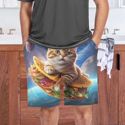 HOT ! Men's Space Taco Cat Funny Pajama Shorts with Pocket and Drawstring S 202b4713