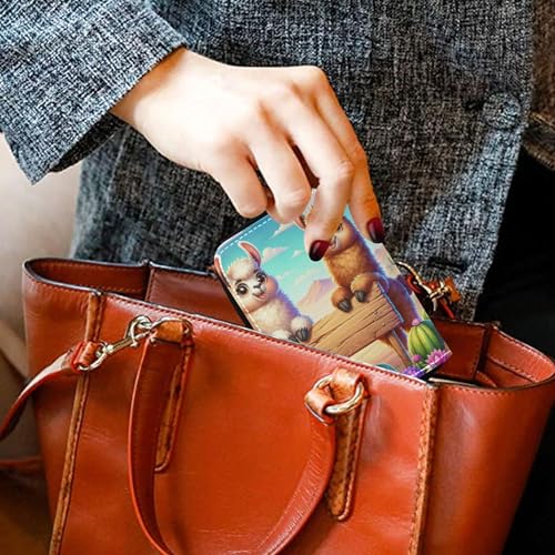 HOT ! Cute Card Holder RFID Blocking Wallet Womens Leather Zip Around Travel Wallet with Zipper Cute Cartoon Llamas Colorful