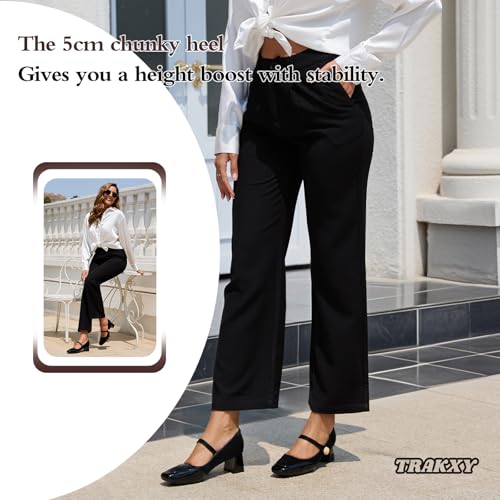Trakxy Women's Mary Jane Heels - Chunky Block Heel Pumps with Square Toe & Buckle Straps, cozy Dress Shoes for Wedding, Office, vintage Chic Low Heels