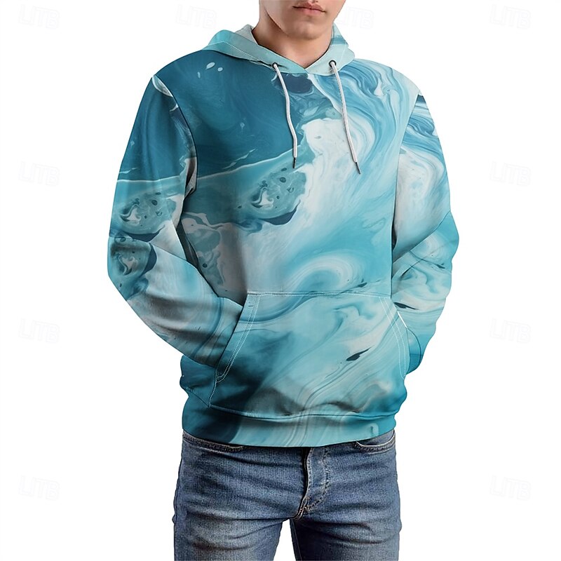 More information about Men's Graphic Flowing Quicksand / Liquid Hoodie Hoodies Sweatshirt Vacation Daily Long Sleeve Hooded Vacation Sports Outdoor Going out Blue Printing Winter Spring & Fall Designer