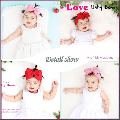 Infant bows Baby girls Bows Red& Pink Heart Headband, Newborn Soft Baby Hairband, One sizes fits All Baby (pink love&red) 4