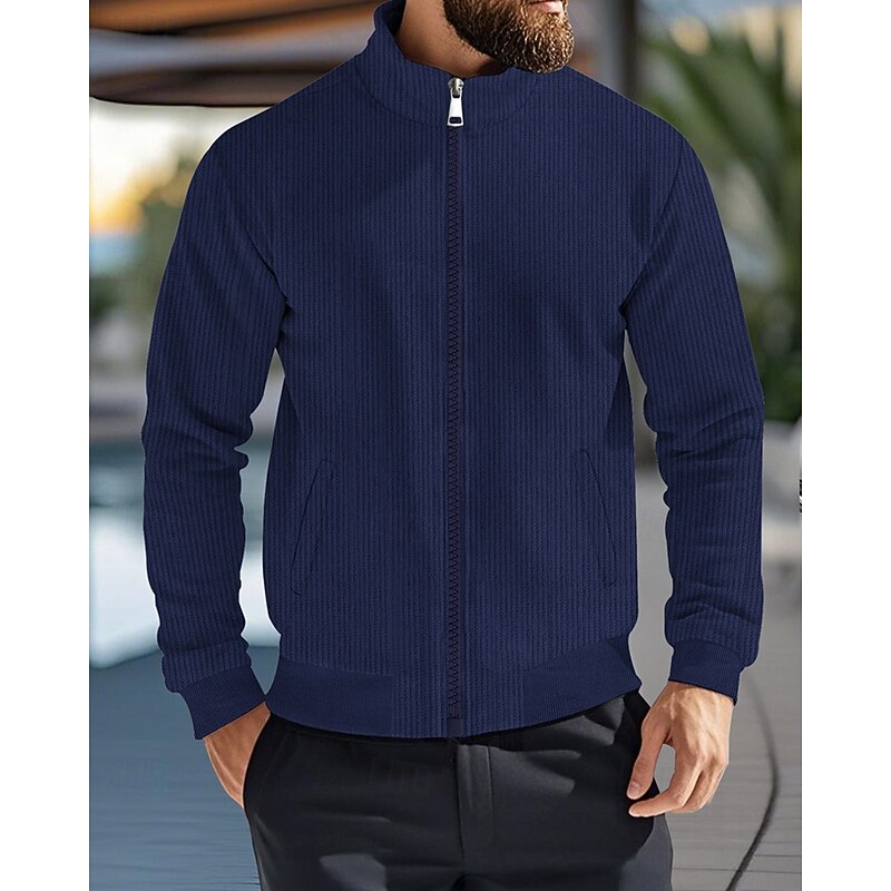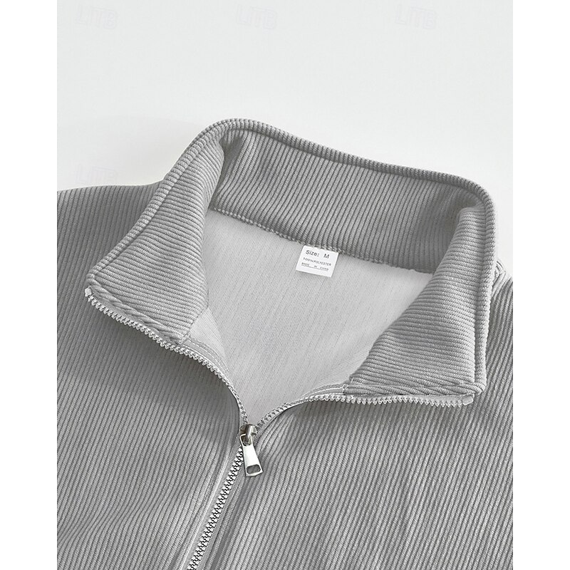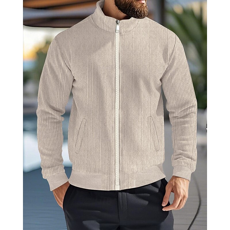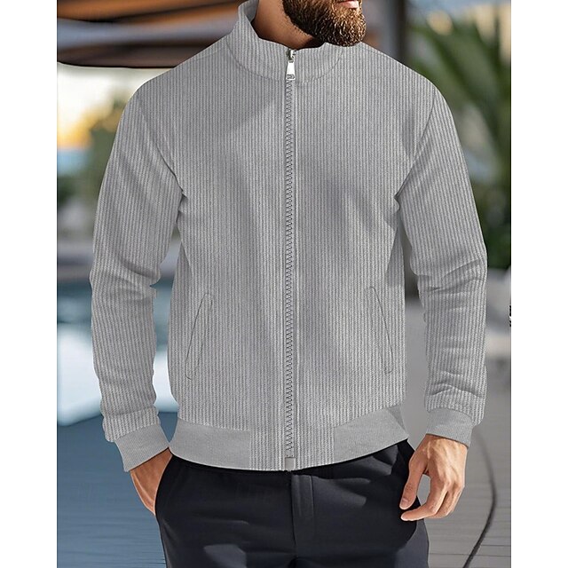 More information about Men's Corduroy Jacket Casual Jacket Vacation Daily Breathability Pocket Fall Winter Plain Fashion Classic Standing Collar Regular Apricot Black Navy Blue Light Grey Army Green Jacket