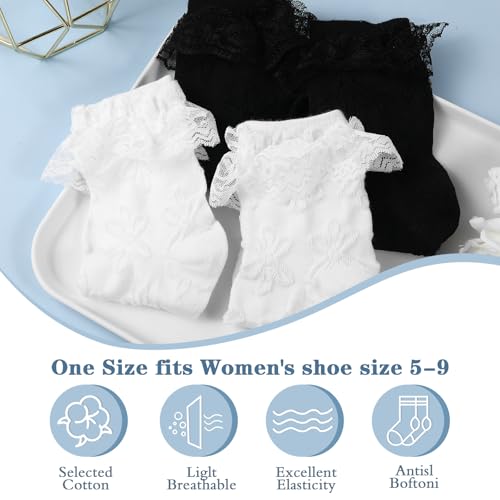 • Women's Ruffle Socks : You will receive 2 pairs socks, white ruffle socks and black lace socks , perfect for your beautiful dress. Cute ankle socks for women are enough to meet your daily needs or share with others, and keep your feet beautiful and relaxed on important occasions
