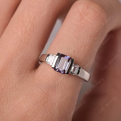 S925 Sterling Silver 3-Stone Ring Engagement Ring Emerald Cut Gemstone Ring Half Bezel Wedding Promise Rings for Women Jewelry 7