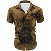 More information about Men's Skull Nautical Sailboat Shirt Summer Shirt Button Up Shirt Short Sleeve Vintage Retro Outdoor Vacation Dailywear Summer Spring Turndown 3D Print Collared Shirts Brown