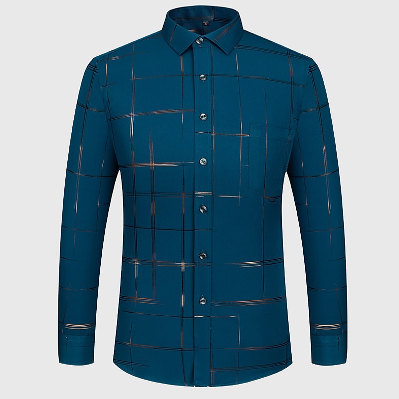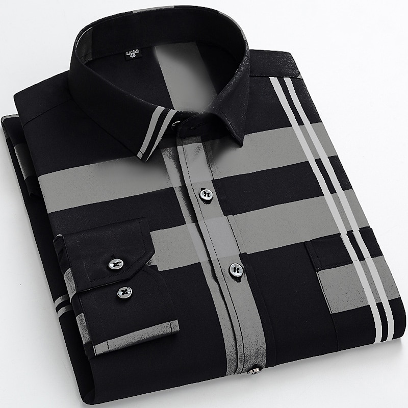 Men's Dress Shirt Non Iron Shirt Wedding Work Black / Red Black / Gray Black White Long Sleeve Square Neck Summer Clothing Apparel Print 17