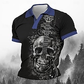 More information about Day of the Dead Men's Skull Guitar Polo Shirts Golf Shirt Short Sleeve Polo Shirts V Neck Horror Streetwear Festival Wear Party Outfits 3D Print Spring & Summer Black