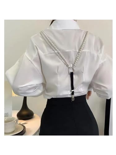 • Women's Pearl Suspenders, Fashion Rhinestone Chain Y-Shape Suspender Belts for Lady, Girl, Bridal, Adjustable Elastic Braces with 3 Metal Clips, Cute Wide Suspenders for Pants, Skirt, Christmas Gift