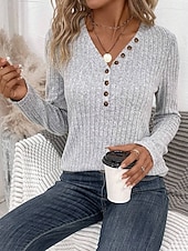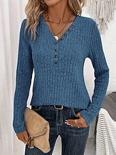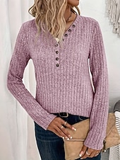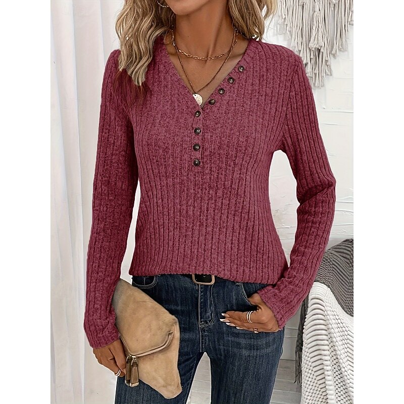More information about Women's Sweater Casual Soft Pure Color Ribbed V Neck Knitted Long Sleeve Regular Tops Knit Outdoor Daily Weekend Pink Red Fall Winter