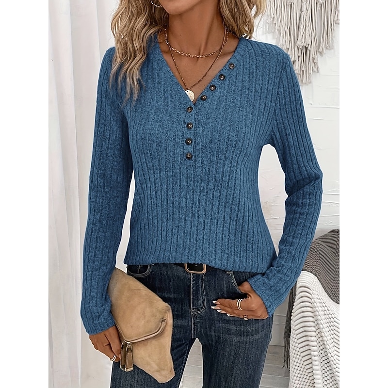 HOT ! Women's Sweater Casual Soft Pure Color Ribbed V Neck Knitted Long Sleeve Regular Tops Knit Outdoor Daily Weekend Pink Red Fall Winter