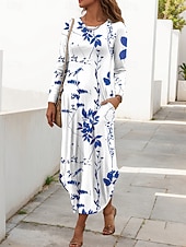 More information about Women's Maxi Dress Sheath Dress T Shirt Dress Tee Dress Vacation Casual Daily Regular Fit Floral Graphic Long Sleeve Crew Neck Red Blue Purple Green Summer Spring Fall