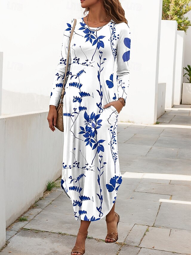 HOT ! Women's Maxi Dress Sheath Dress T Shirt Dress Tee Dress Vacation Casual Daily Regular Fit Floral Graphic Long Sleeve Crew Neck Red Blue Purple Green Summer Spring Fall