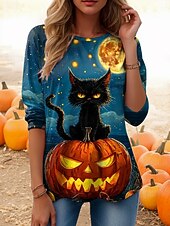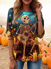 More information about Halloween Women's T Shirt Skulls Crew Neck Long Sleeve Tunic Graphic Vintage Casual Regular Tops Daily Print Sage Green Blue Dusty Blue Spring Fall